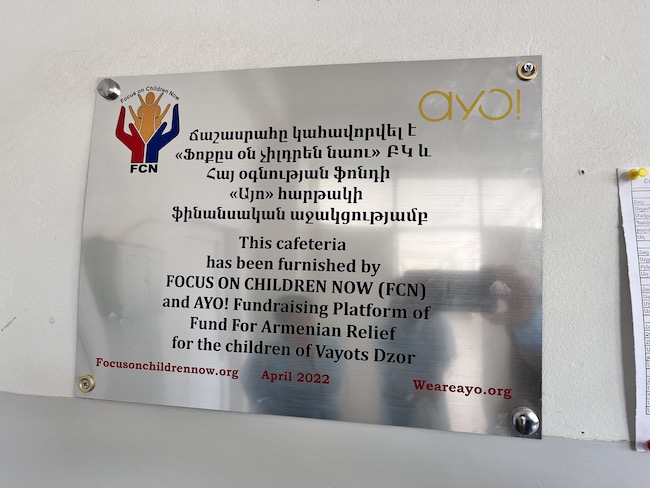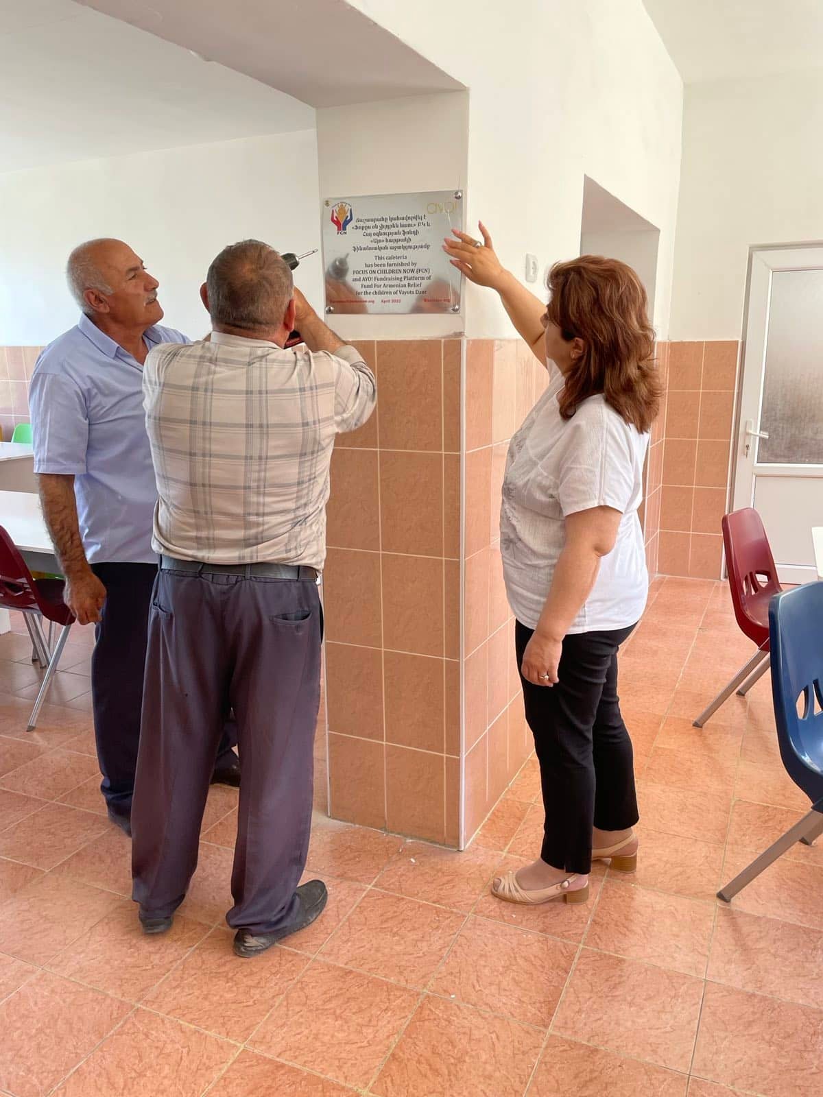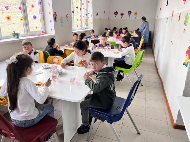In partnership with Focus on Children Now (FCN), Fund for Armenian Relief (FAR)’s AYO Program, and the School Feeding and Welfare Agency (NCEDI Foundation), a $23,000 initiative was launched to support the furnishing of kitchens and cafeterias in six schools: Arpi, Getap, Karaglukh, Zarritap, Vayk, and Agarakadzor. The project benefited 653 students by providing essential items tailored to each school’s needs, including tables, chairs, trash cans, tableware, kitchenware, and dishware—helping create cleaner, more functional, and welcoming spaces for students to gather and eat.