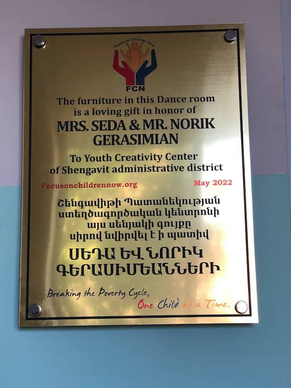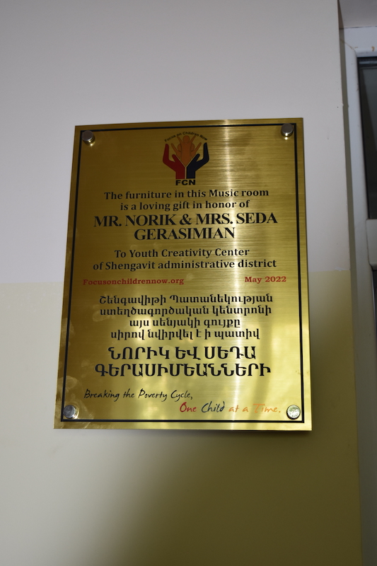 Youth Creativity Center of Shengavit – Dance & Music Rooms Youth Creativity Center of Shengavit – Dance & Music Rooms Location Shengavit,Yerevan Budget $10,000 Project Completed 2022 Sponsors:in honor of MRS. SEDA & MR. NORIK GERASIMIAN FCN Program: Education Anna Dalyan2025-08-07T00:16:04-08:00