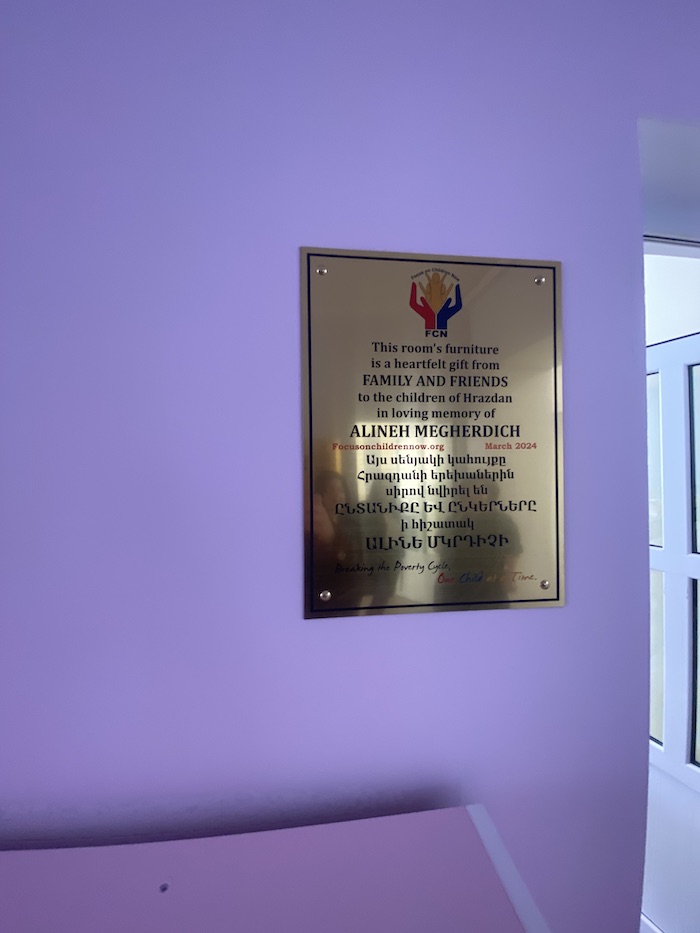 Hrazdan (Armenian: Հրազդան) is a town and urban municipal community in Armenia, serving as the administrative center of Kotayk Province. It is located 45 kilometers (28 miles) northeast of the capital Yerevan and is home to approximately 58,000 residents. The municipality renovated the building of the kindergarten.  Upon the completion of the new building, the total student capacity expanded to 400. In 2024, FCN installed furniture for 4 new classrooms and 110 additional students with the help of generous donors. This project not only addressed the issue of limited space but also created a minimum of 12 local employment opportunities. Furthermore, it opened doors for more mothers to join the workforce, generating income for their families while ensuring their children receive the care they deserve.